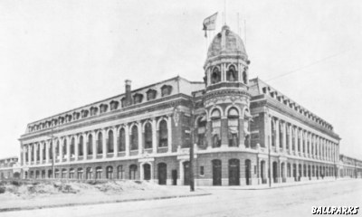 Contributing Writer Bob Warrington penned this piece for Bucketfoot. Bob gave his OK to edit the piece (bad move, Bob) so we made just enough changes to lower the quality to our usual standard. Our gratitude and a request for another article go out to Bob. Philadelphia's Baker Bowl was typical of pre-Shibe wooden parks.Early exterior shot of Shibe Park. |